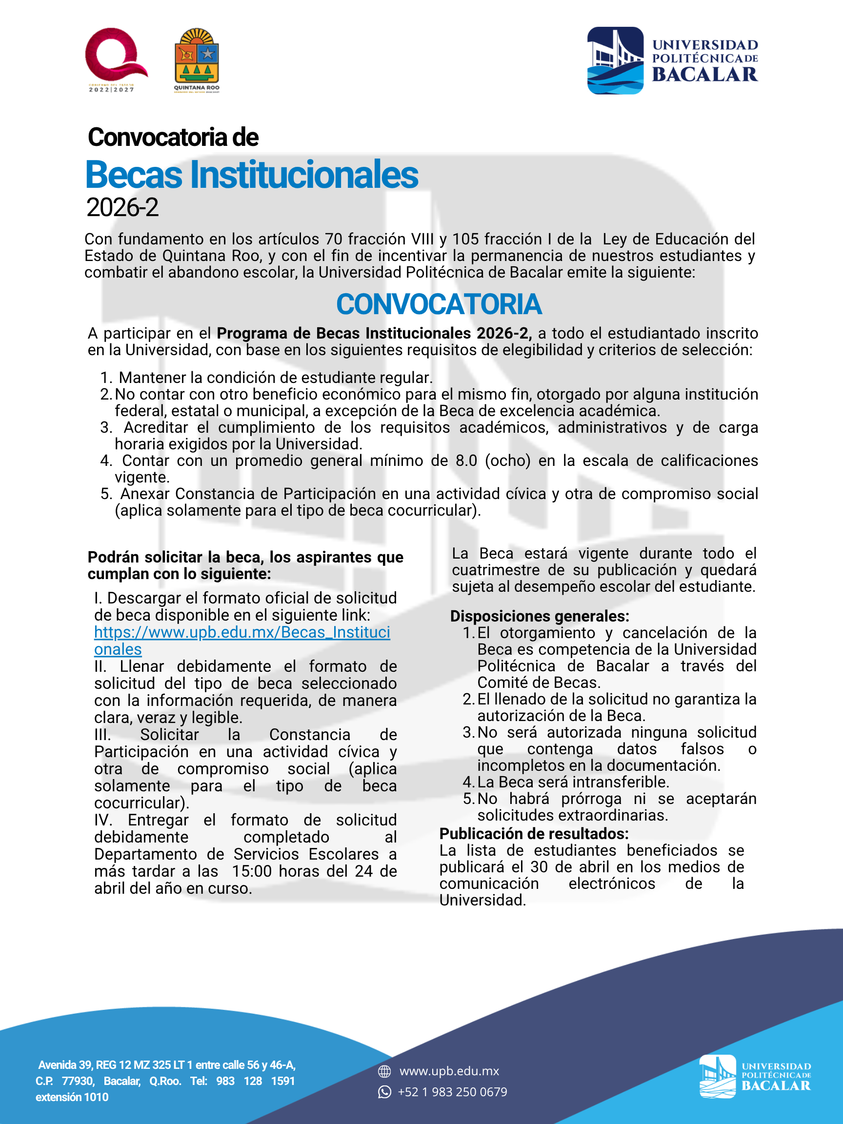 Convocatoria de Becas Institucionales 2026